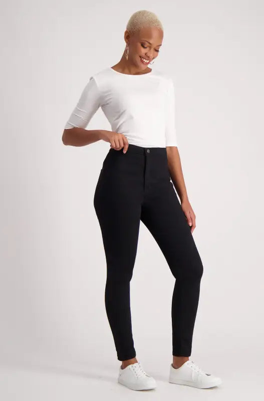 The Jessie high rise skinny jeans feature our signature stretch fabric. You will never go out of style with this denim! Featuring a high rise skinny leg fit, extra stretch denim fabric, zip & button closure. Wear with your favorite top and sneakers, for a night out pair them with heels!
