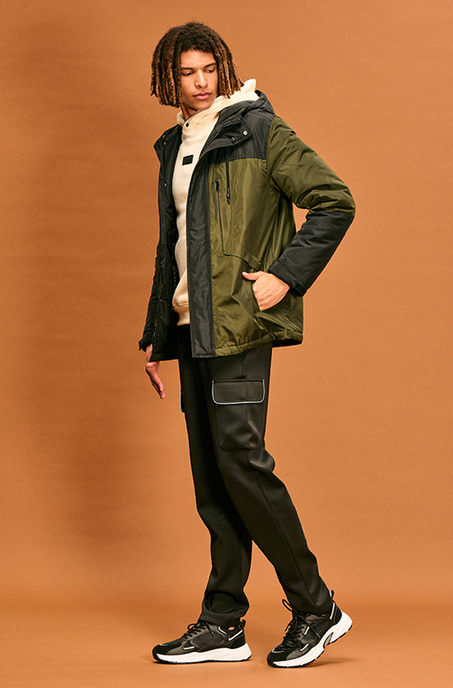 • Hood with functional drawcords