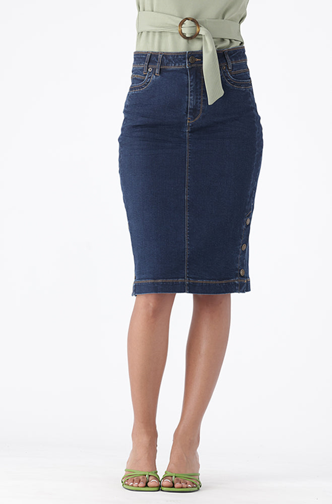CAMDEN DENIM SIDE BUTTON SKIRT