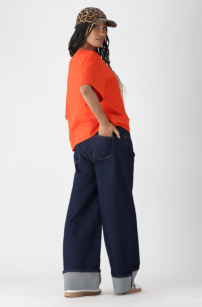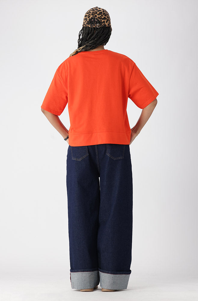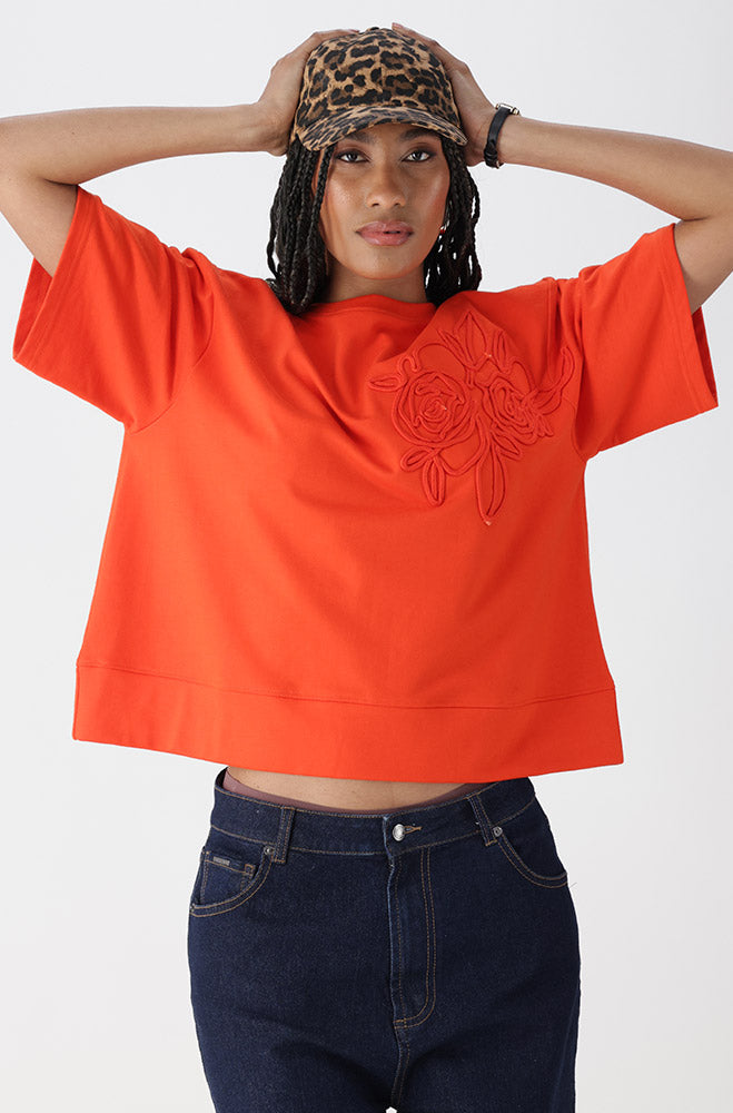 This top features a wide hemline for a relaxed, flattering fit that enhances everyday comfort. A charming flower chest print adds a playful yet elegant touch to the minimalist design.