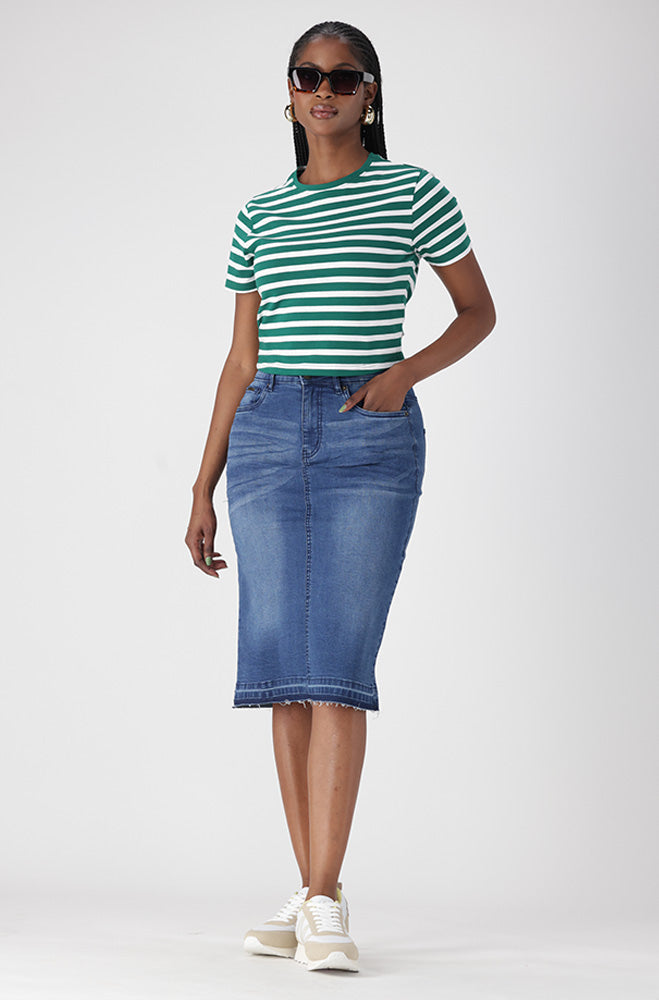 KENDRA DENIM UNCLIPPED HEM SKIRT