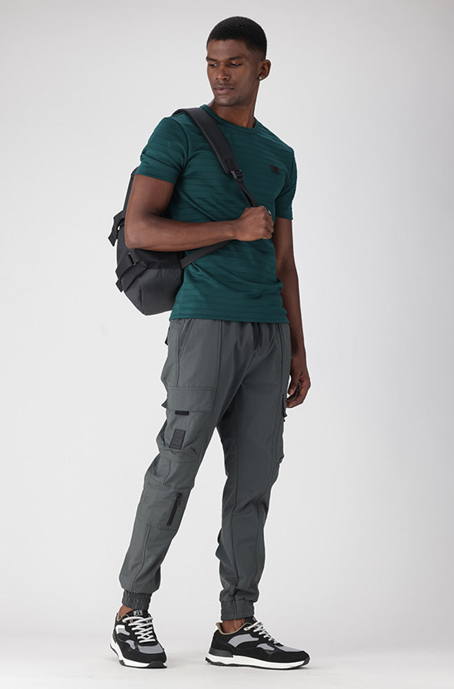 Elevate your look with the Skentra Tee. This slim fit, textured crew neck features a rubberized chest badge and is crafted from a soft, stretchy blend for all-day comfort. Model wears size Large. Perfect for effortless, modern style.