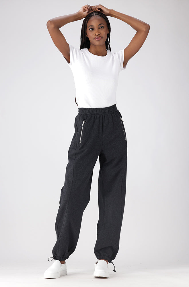 Stay ahead of the trend with the Zip Pocket Jogger, featuring a bungee cord hem for an adjustable fit and an edgy touch. Pair it with the matching top for a sleek, street-style look that’s both functional and stylish.
