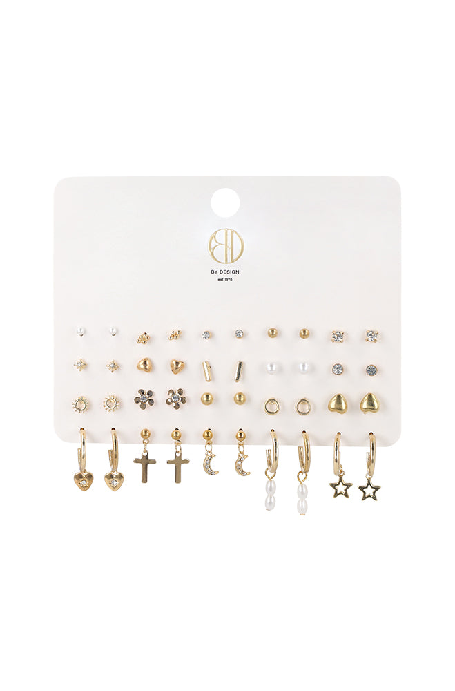 Add elegance to any look with this 20 pack gold and colour diamante stud earrings, each uniquely made to add a little sparkle to your day or night look.